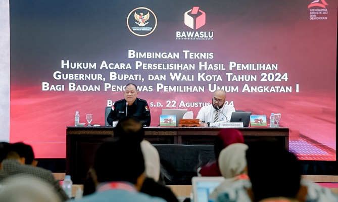 Anggota Badan Pengawas Pemilu (Bawaslu) Provinsi Lampung, Suheri, mengikuti kegiatan Bimbingan Teknis (Bimtek) Hukum Acara Perselisihan Hasil Pemilihan (PHP) untuk Pemilihan Gubernur, Bupati, dan Wali Kota Tahun 2024. Kegiatan ini diadakan di Pusat Pendidikan Pancasila dan Konstitusi, Bogor, dan berlangsung pada Senin (19/8). Bimtek ini bertujuan untuk meningkatkan kapasitas dan pemahaman teknis para pengawas pemilu dalam menghadapi kemungkinan sengketa hasil pemilihan.