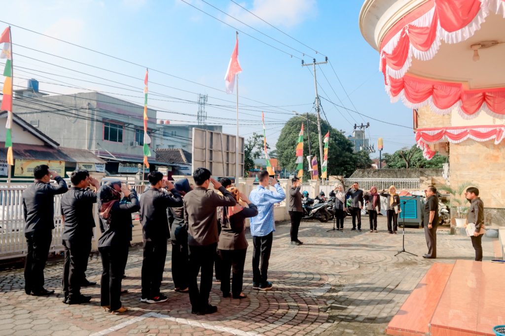 Kepala Sekretariat Bawaslu Provinsi Lampung menjadi pembina apel rutin pada Senin pertama di bulan Agustus di halaman kantor Sekretariat Bawaslu Provinsi Lampung. (7/08)