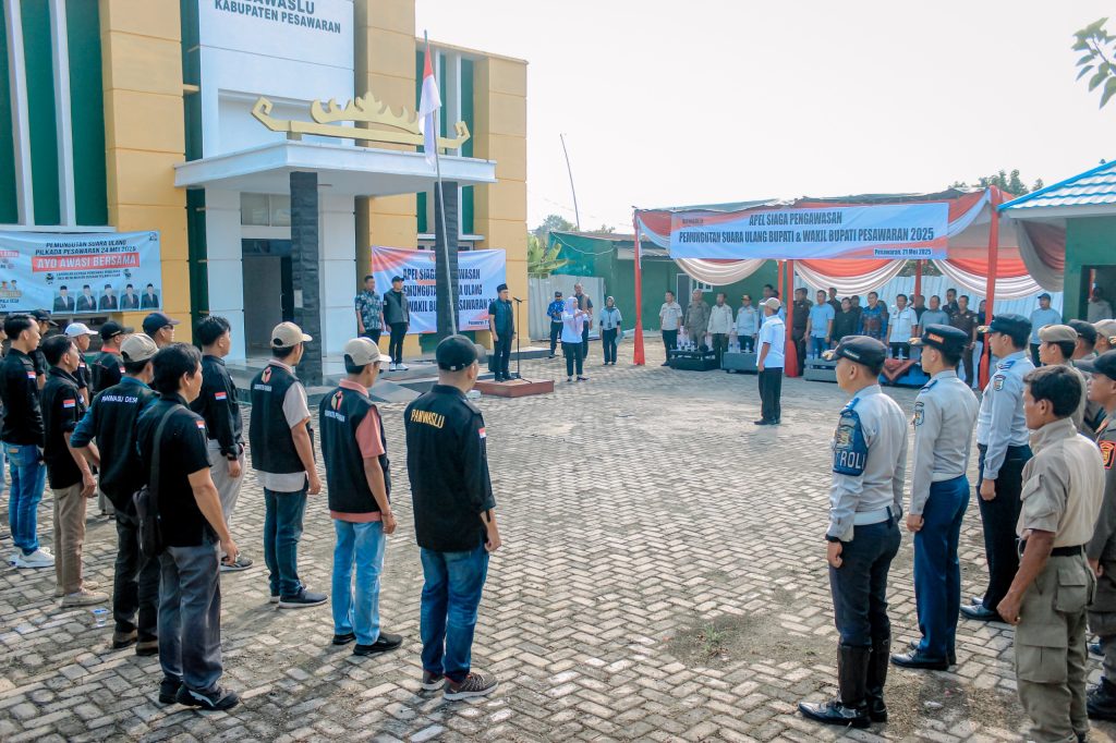 Dalam rangka menyambut masa tenang serta tahapan Pemungutan dan Penghitungan Suara Ulang (PSU) Pemilihan Bupati dan Wakil Bupati Kabupaten Pesawaran Tahun 2025, Bawaslu Kabupaten Pesawaran menggelar Apel Siaga Pengawasan dan Penertiban Alat Peraga Kampanye (APK) di halaman kantor Bawaslu Kabupaten Pesawaran, Rabu pagi (21/05). Apel ini dipimpin langsung oleh Anggota Bawaslu Provinsi Lampung, Imam Bukhori.