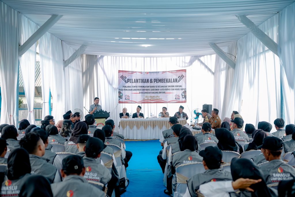 Panwaslu Kecamatan Tanjung Bintang secara resmi melantik 118 Pengawas Tempat Pemungutan Suara (PTPS) pada Senin (4/11) Didesa Serdang Kecamatan Tanjung Bintang Kabupaten Lampung Selatan. PTPS yang dilantik ini akan bertugas di 16 desa dalam mengawasi jalannya Pemilihan Kepala Daerah (Pilkada) Serentak 2024.