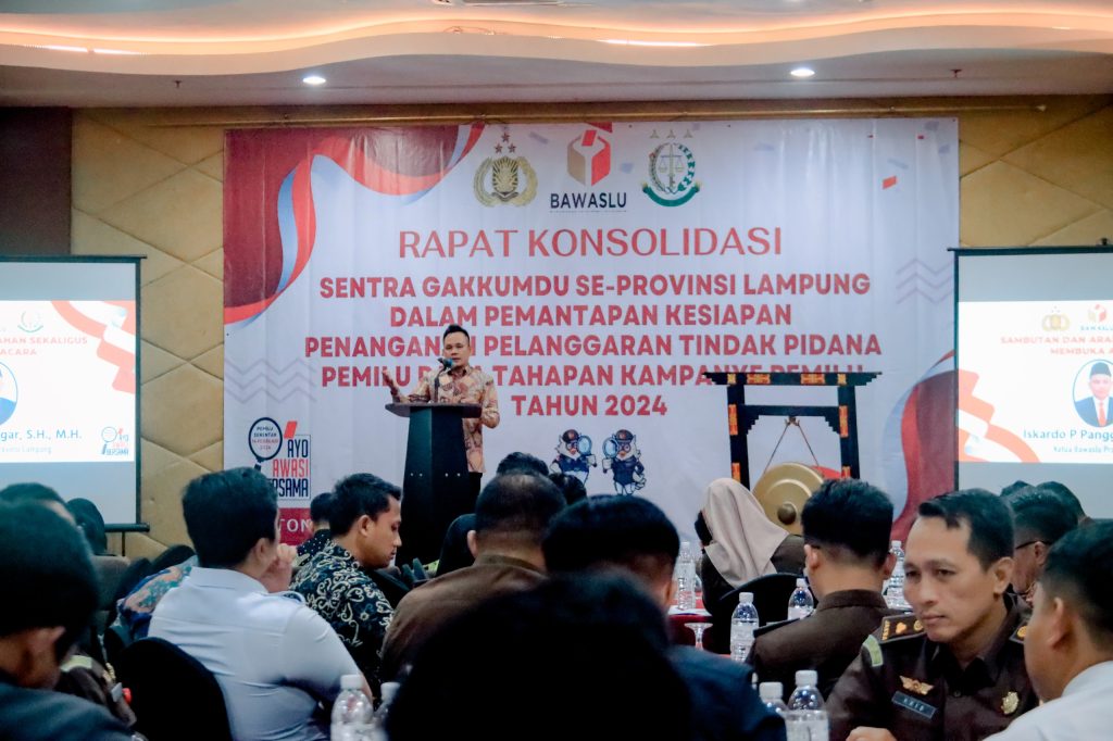 Kegiatan yang bertujuan terbinanya kesepahaman bersama dalam tahapan kampanye pemilu, aspek teknis dan non teknis prosedur dalam penegakkan hukum pemilu dan menentukan arah kebijakan yang Strategis dihadiri Anggota Bawaslu Lampung Suheri, Tamri, Ahmad Qohar, dan Hamid Badrul Munir, Sentra Gakkumdu Provinsi Lampung dan Kabupaten/Kota Se-Provinsi Lampung.