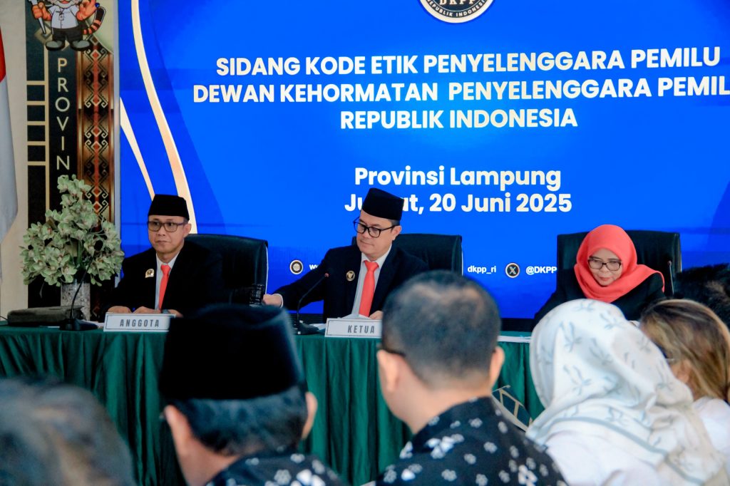 Komitmen untuk menjaga integritas dan etika penyelenggara pemilu kembali ditegaskan dalam Sidang Kode Etik Penyelenggara Pemilu yang digelar oleh Dewan Kehormatan Penyelenggara Pemilu (DKPP) di Ruang Sidang Komisi Pemilihan Umum (KPU) Provinsi Lampung, Jumat (20/6).