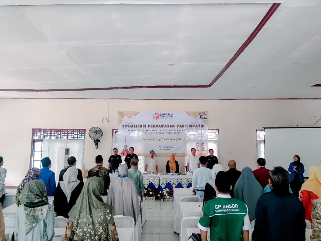 Selain itu, Ketua Bawaslu Kabupaten Lampung Utara, Putri Intan Sari ungkapkan sosialisasi bertujuan untuk memberikan pemahaman pengawasan partisipatif bagi para peserta pemilu dan masyarakat pemilih dalam pelaksanaan undang – undang pemilu serta upaya pencegahan dan pengawasan langsung terhadap berbagai tahapan pemilu 2024.