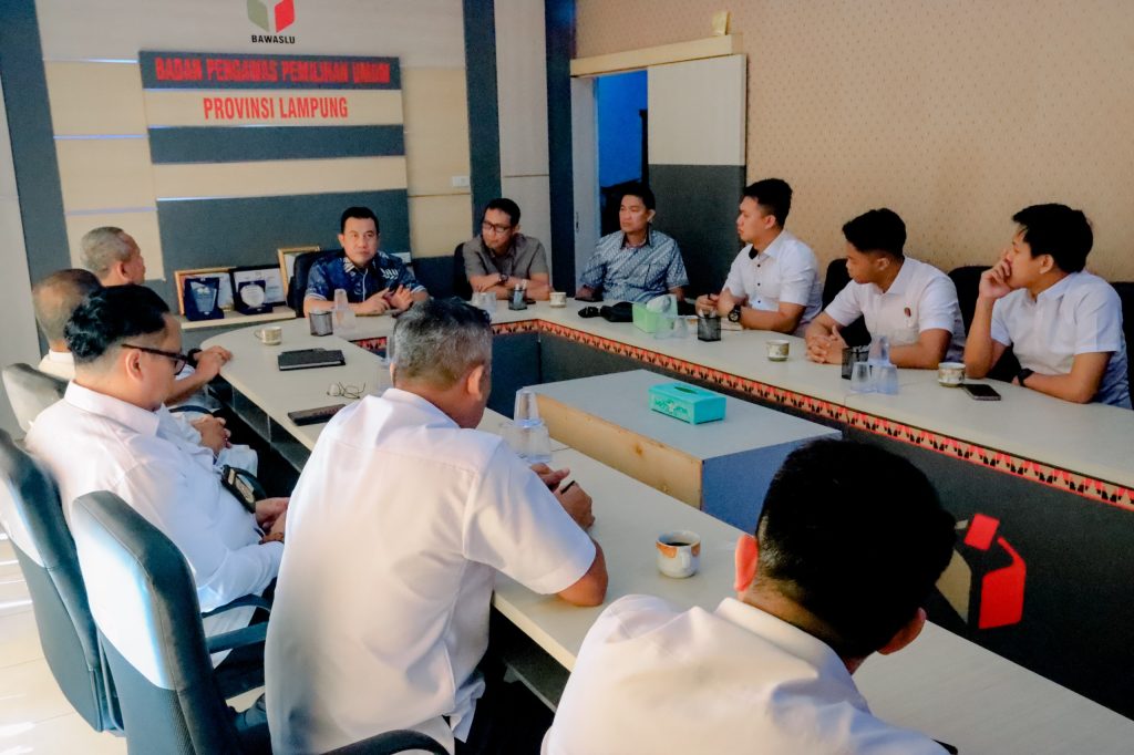 Bawaslu Lampung menerima kunjungan dari Markas Besar Kepolisian Republik Indonesia (Mabes Polri) terkait hasil pengawasan tahapan kampanye Pemilu 2024, Senin (12/2). Dalam pertemuan tersebut, Anggota Bawaslu Lampung, Tamri, menguraikan data pelanggaran kampanye yang telah ditangani, termasuk politik uang.