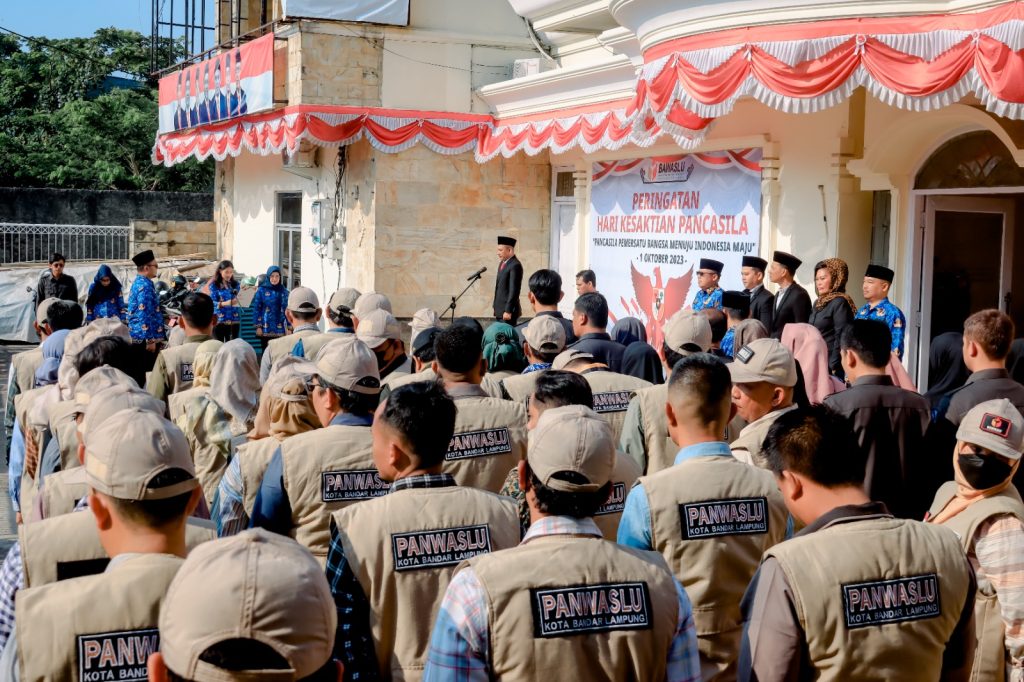 Dalam rangka memperingati hari Kesaktian Pancasila Tahun 2023, Badan Pengawas Pemilihan Umum Provinsi Lampung menggelar upacara hari Kesaktian Pancasila di halaman Sekretariat Bawaslu Provinsi Lampung (1/10).